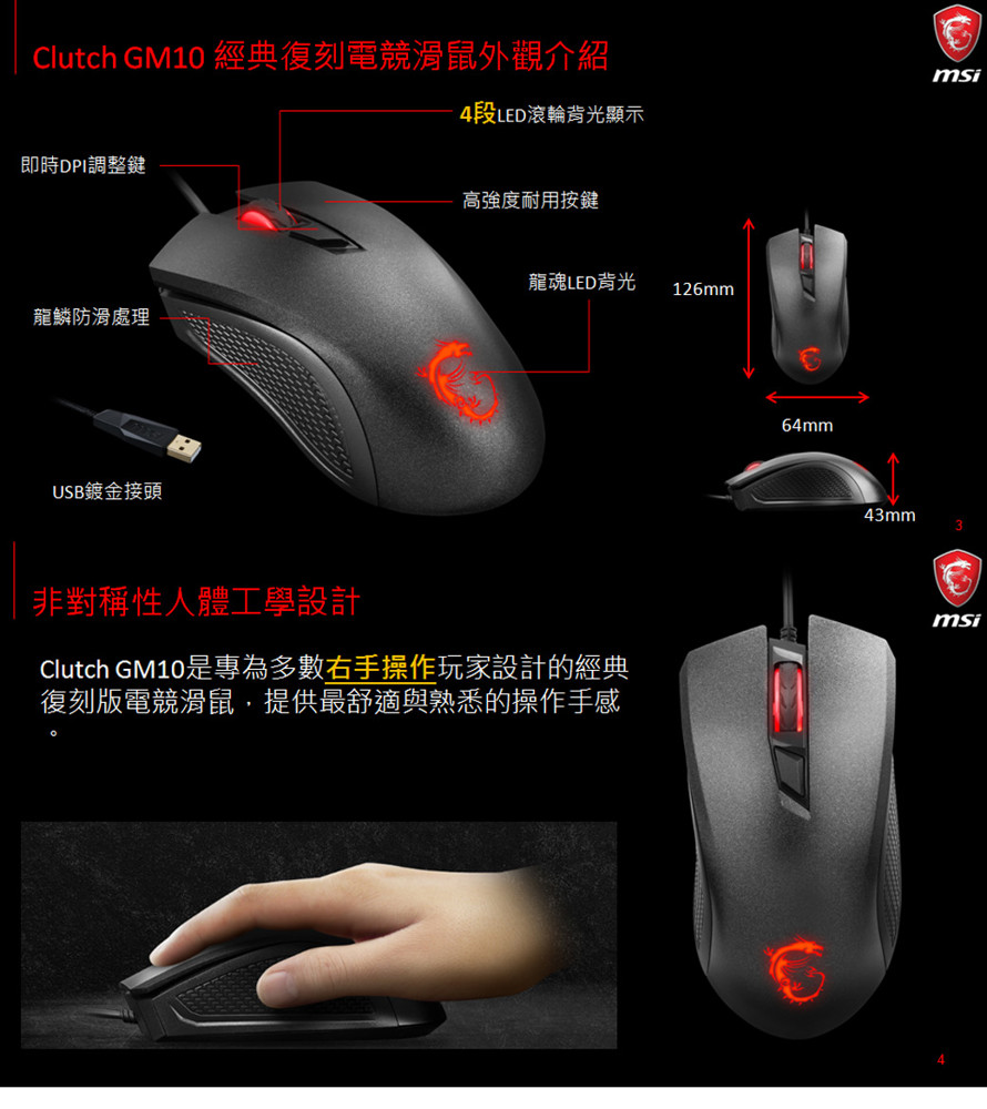 電競首選品牌 MSI微星Clutch GM10經典復刻右手專用電競滑專業外籍老師推薦 樹林鼠